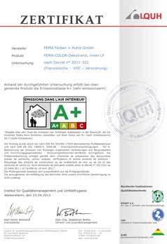• 歐陸檢測(cè)voc A+認(rèn)證 émissions dans l'air intérieur